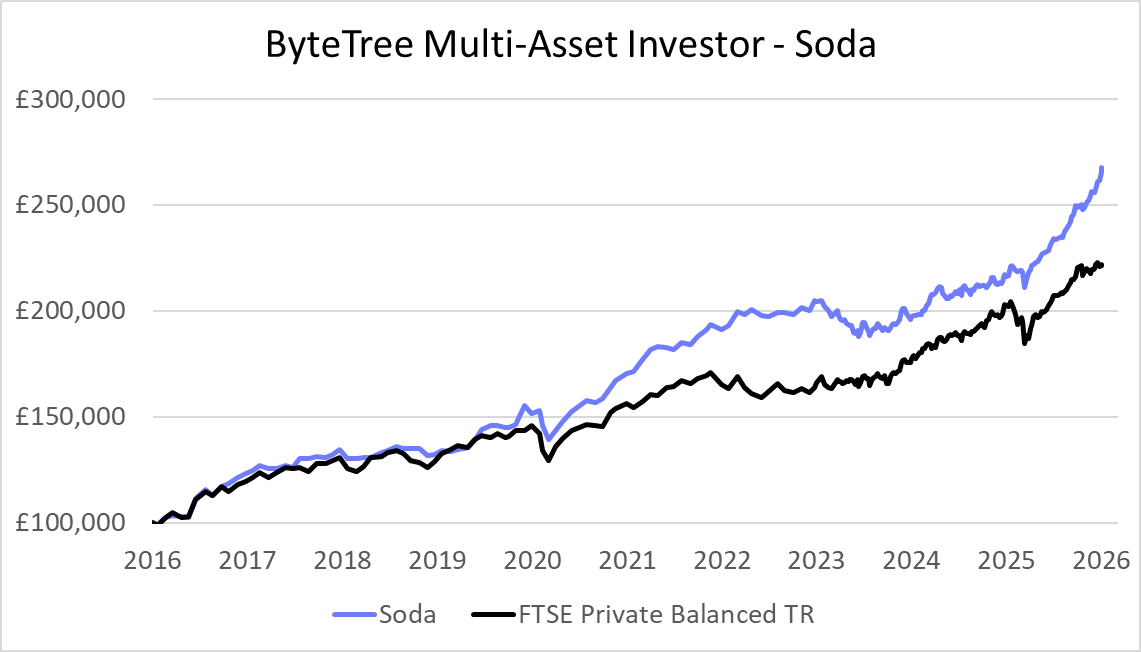 And for Soda, a pause in 2023/4, when I was reluctant to embrace the technology rally, but now back on track. As the US market, which has dominated markets since 2008, cools, it is the rest of the world’s turn to perform. This is where ByteTree is at its best.