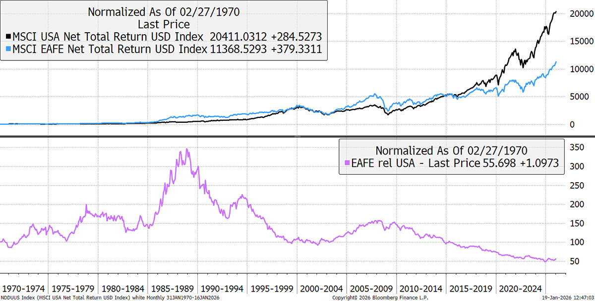 USA versus EAFE – since 1970