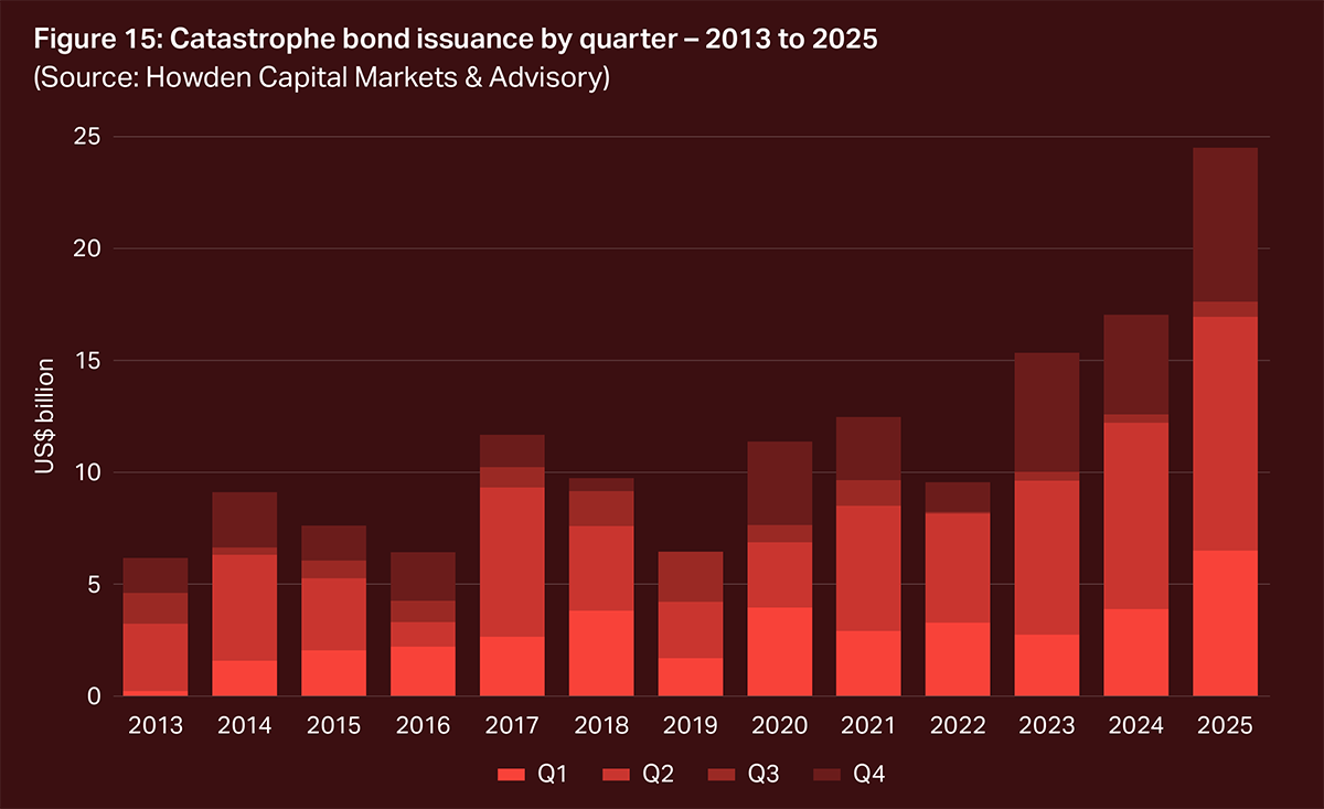 Volumes in catastrophe bond issuance grew healthily last year, and broke records, reaching levels nearly 45% higher than in 2024 at $24.5 billion. However, high volumes are often associated with weaker pricing, as more money chases fewer deals.