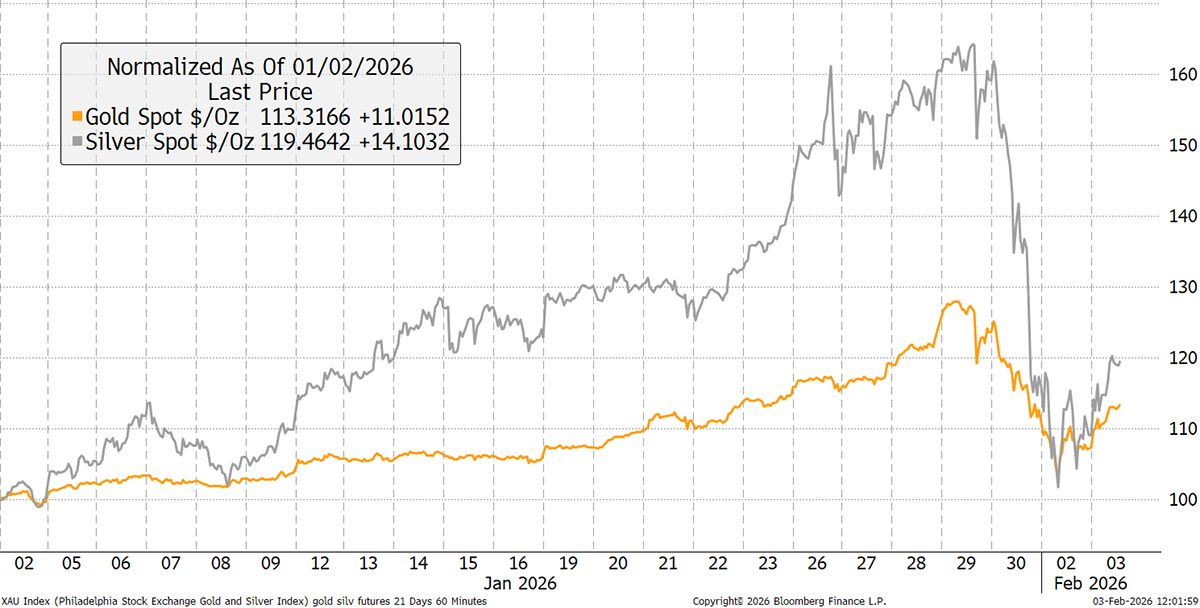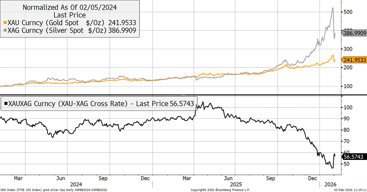When the volatility picks up, I believe it is right to reduce exposure. We have done that twice. Firstly, in October, and secondly, just two weeks ago, at a slightly higher price than where it trades today. Silver exposure is now 4.4%, so it is low enough not to cause too much damage. I will be watching the GSR closely from here, as things settle down.