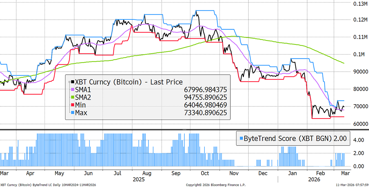 Bitcoin’s ByteTrend Score has risen to a 2, proving resilience during the Iran War. Will this last?