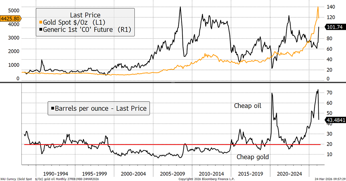 For us, the notable shift in markets has been gold versus oil. In February, an ounce of gold bought over 70 barrels of oil, even more than during the pandemic, when oil was practically free at one point. Today, that ounce buys just 43 barrels, which is a major change.