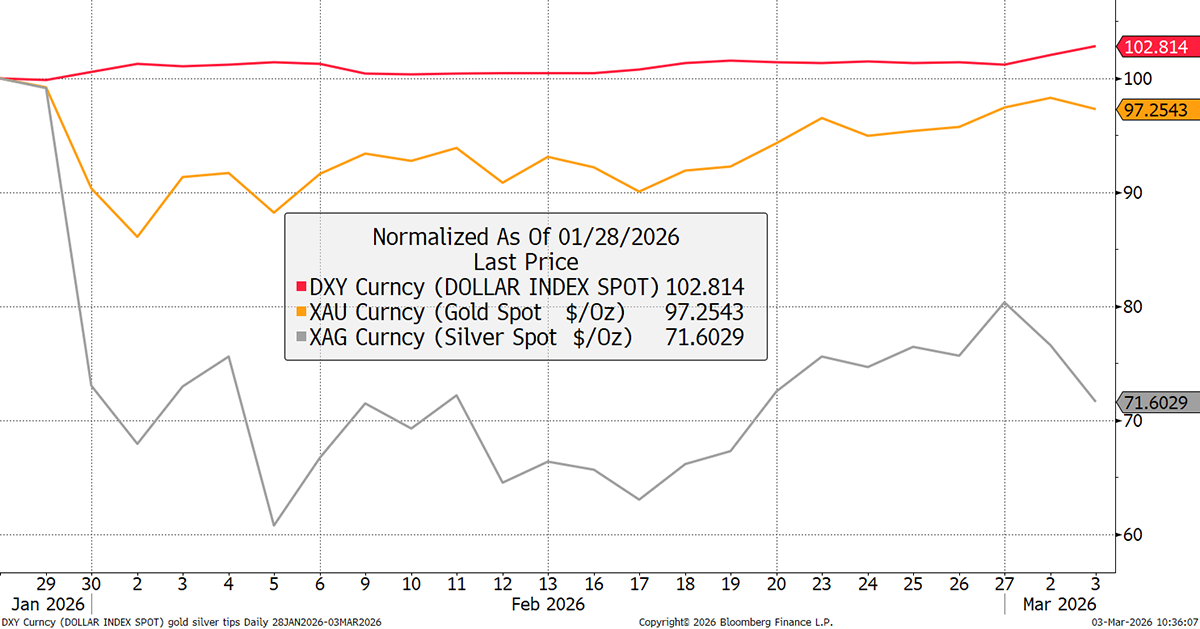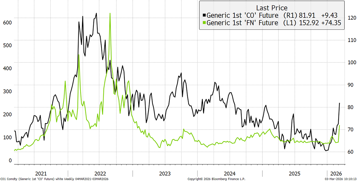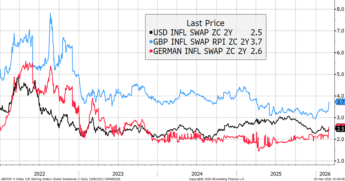 Volatility is up as markets face uncertainty. Energy is higher, which has destabilised the bond market. Gold is flat, suggesting this is about energy rather than monetary conditions. Above all, we have no idea how long this will last.