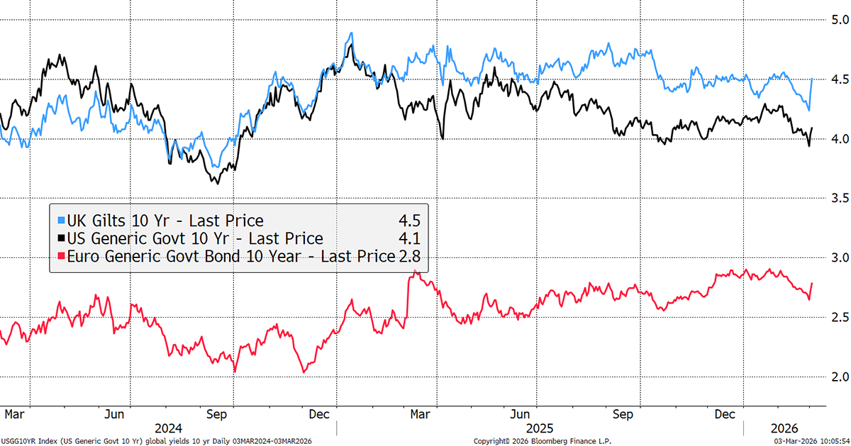 The other change is in bond yields. Only last week, I highlighted how the bond market was settling down, and much has changed since. A crisis normally sees bond yields fall, but in war, the price of oil takes centre stage.