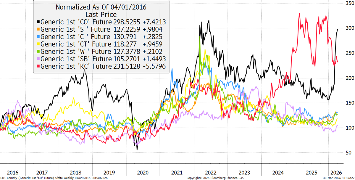 That is not only for farm machinery, but also for transport, chemicals and fertilisers. For the first time, Venture looks at agricultural commodity prices and selects the one most likely to perform during this oil shock.