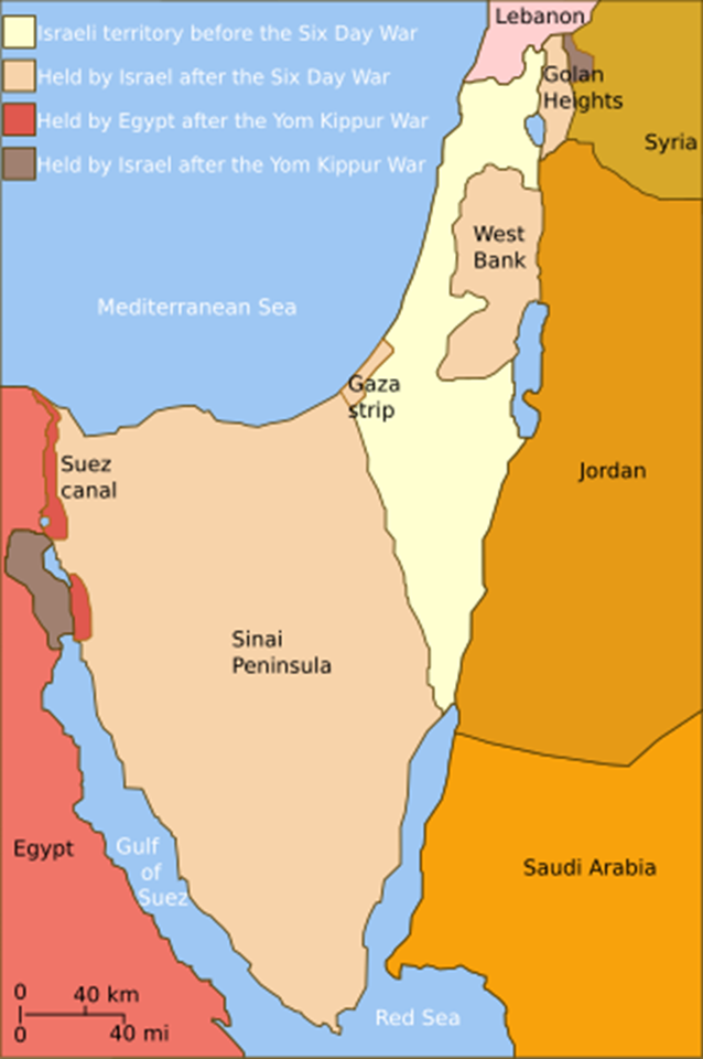 On 6 October 1973, Egypt and Syria launched a surprise attack on the Jewish holy day of Yom Kippur. Israel’s counter-offensive saw them push the invading armies all the way back to, and even beyond, the original borders. The US and Soviet Union were dragged into supporting each side, before the UN brokered a (second) ceasefire on 25 October 1973. Most of the fighting occurred in the Sinai Peninsula and Golan Heights, territories occupied by Israel in 1967.