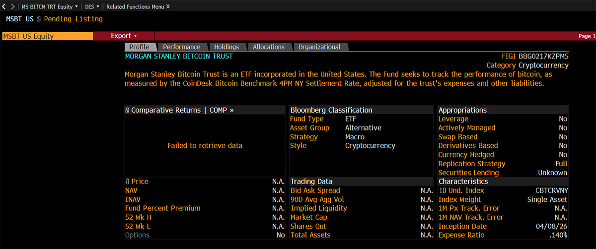 In other big news, Morgan Stanley has joined the Bitcoin ETF rush, launching MSBT perhaps as early as next week. That’s the first major investment bank with a broad reach in the financial world to launch an ETF. The others have been asset managers, and this is a mega bank that acts for the big money.