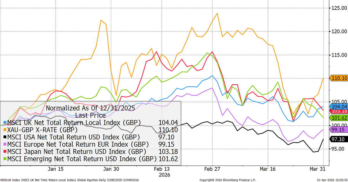 Things were going well in January, especially for non-US equities, right up until the moment the first missile was fired. At that point, markets sold off sharply, with gold bearing the brunt.
