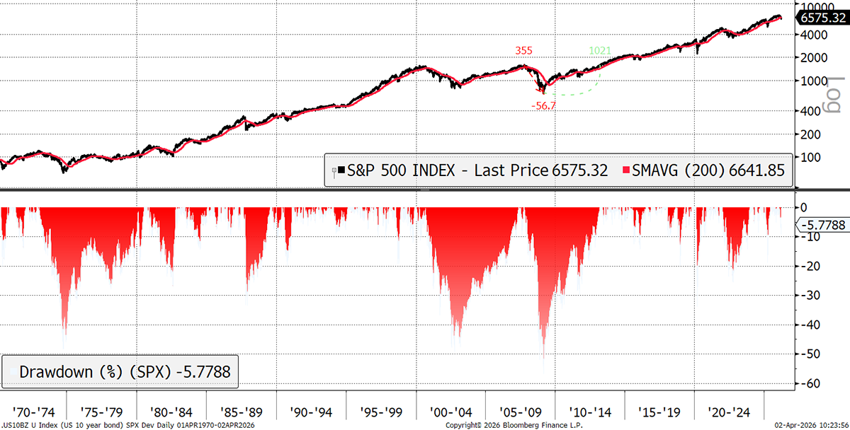 It is never comfortable when the stockmarket is trading below its 200-day moving average. When it does, volatility rises, and the risk of sharp losses increases. In recent years, these have been short-lived or even false alarms. However, against that, we know that US equities are richly valued, and sooner or later, a sharp drop becomes inevitable.
