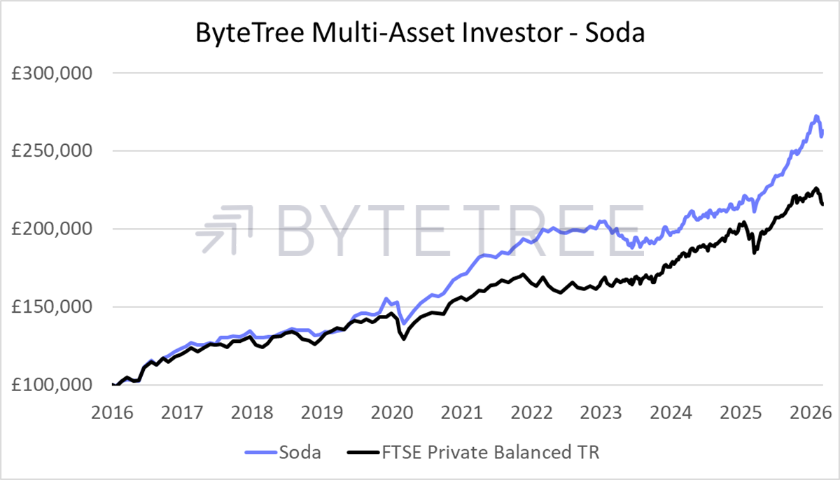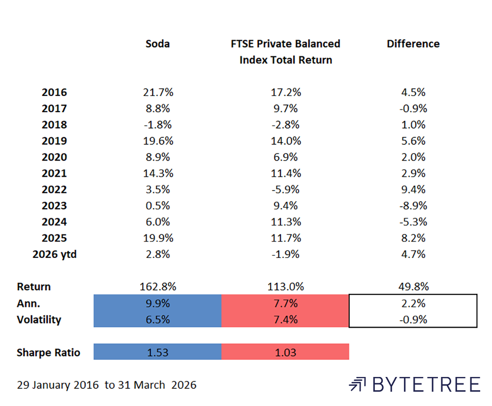 Soda is up 2.8% this year, which is a good result against the FTSE Private Balanced Index, which is a 60% equity, 40% fixed income strategy.