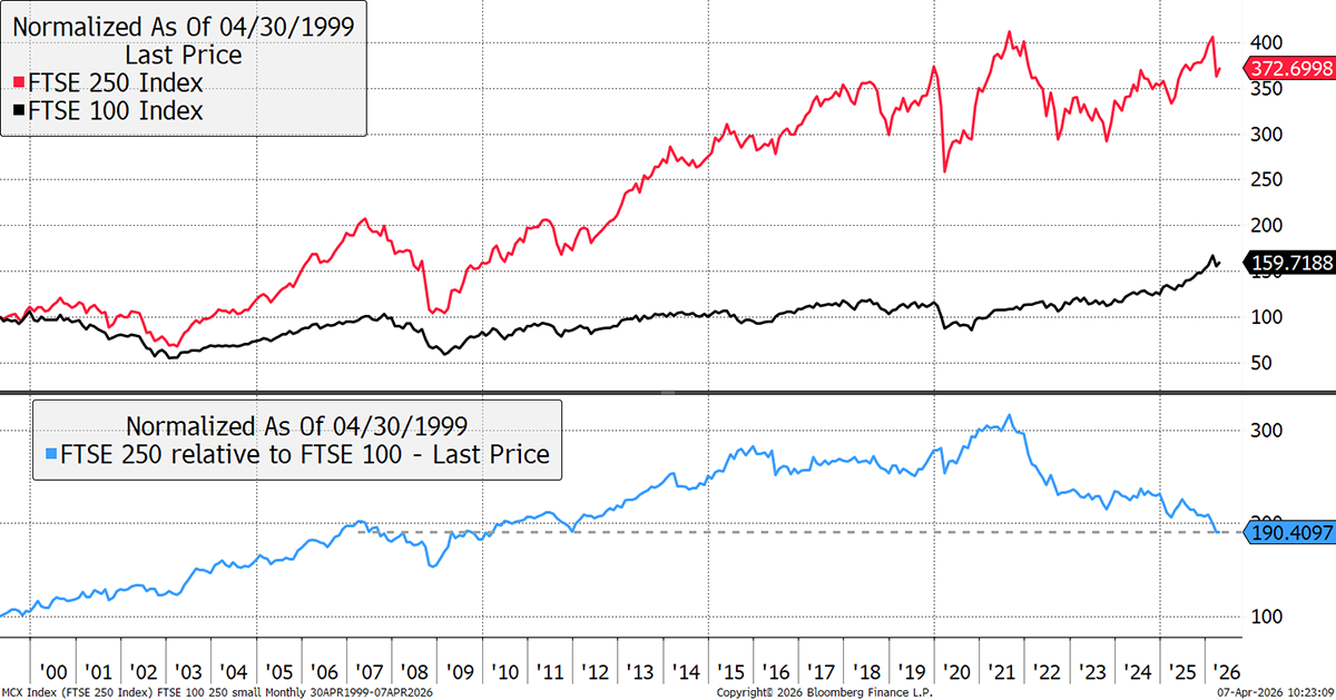 We all know that the FTSE 100 is an index that is laden with natural resources and banks. That makes it well placed for the current environment. It is interesting that the FTSE 250, the UK mid-cap index, is in a much harsher place. Since the summer of 2021, the FTSE 250 is down by 10% while the FTSE 100 is up by 46%. This is a huge lag, which began when rates started to rise.